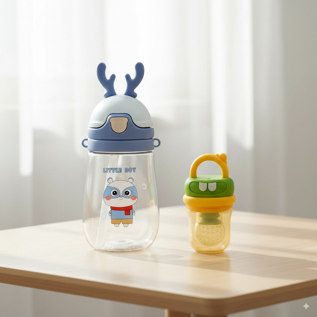 Baby Sipper Bottle with Straw 400ml + Baby Fruit Soother – Feeding & Comfort Bundle