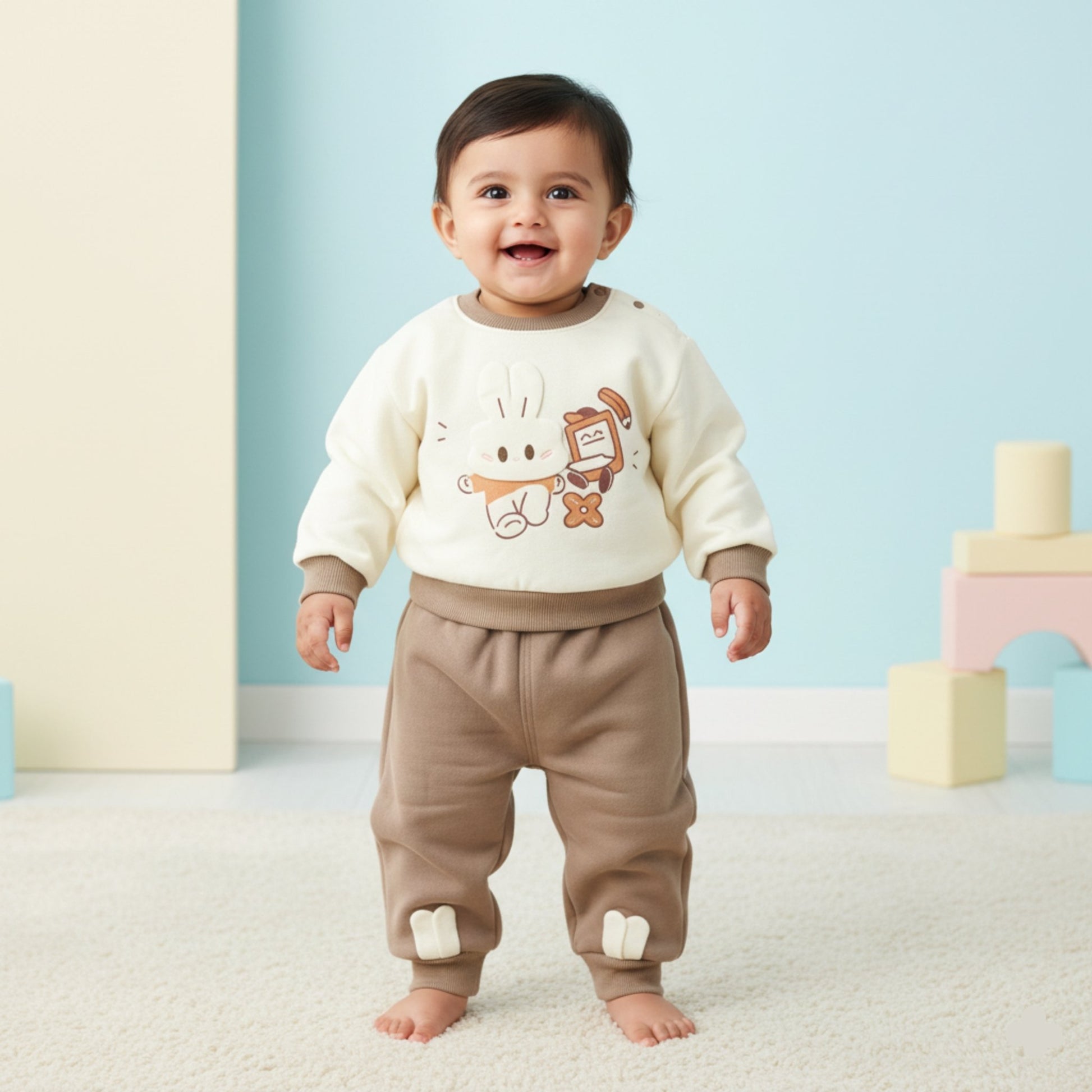 - Design: Playful bunny graphic