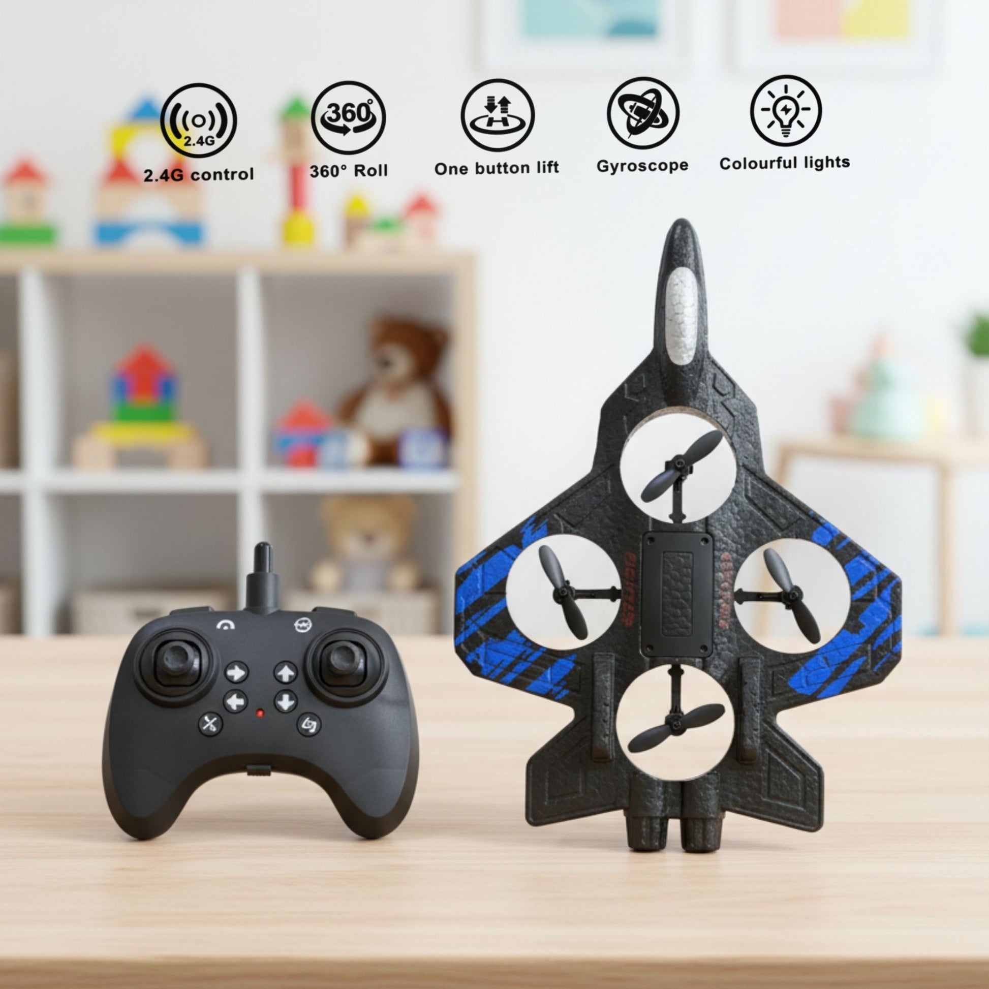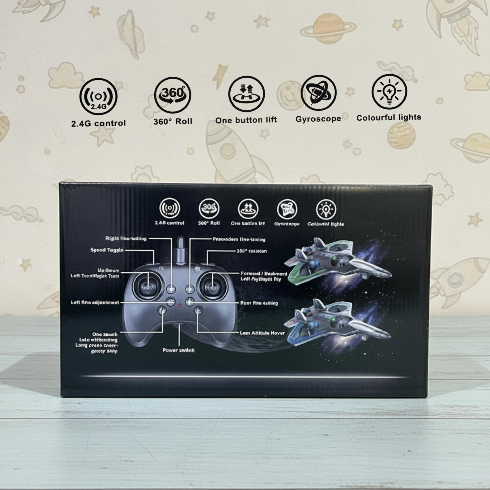 - Built-in gyroscope for stable, balanced, and smooth flight control.